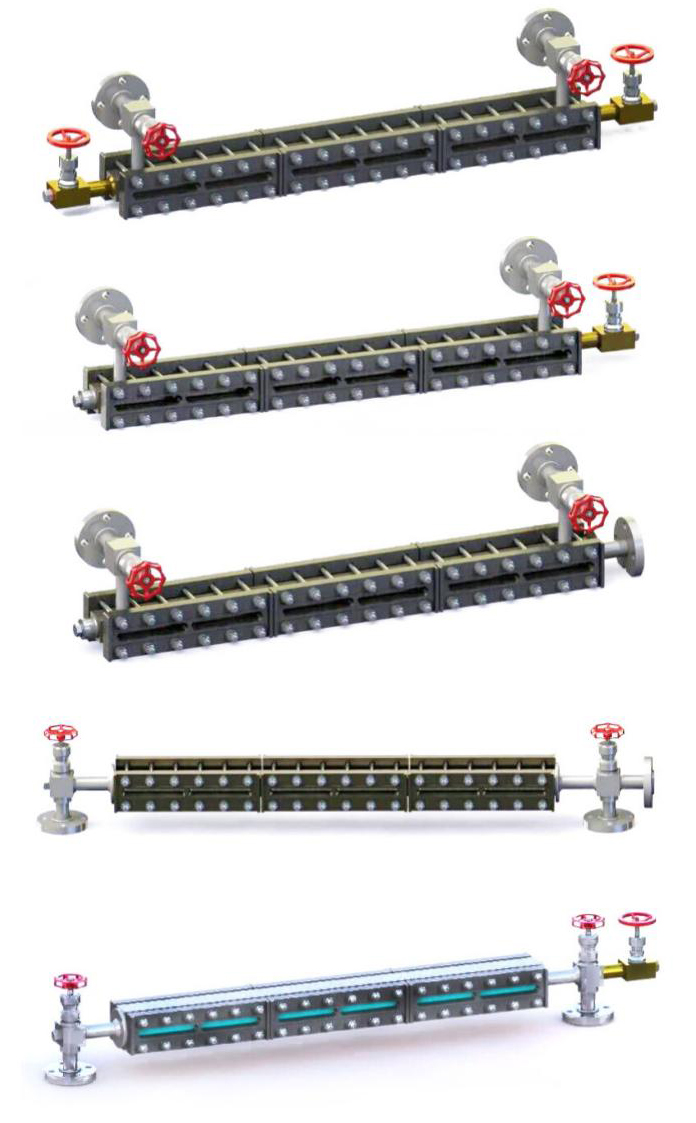 UB系列玻璃液位計由表體、上閥門、下閥門和排污閥組成。上下端安裝法蘭與容器上對應法蘭相連構成連通器、透過玻璃板可直接觀察到容器內液位的實際高度,上、下閥門內均設有安全保護裝置,當玻璃板意外損壞時,保護鋼球在容器內壓的作用下自動密封,防止容器內液體繼續外泄。
